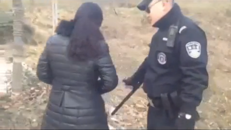 时长1分59秒的视频显示,在某僻静空旷处,当事男女整理衣物,被身着特警制服的多名男子(手持警棍)粗暴讯问。视频未对当事男女面部作任何模糊处理,两人所乘的面包车车牌号码也清晰可见。