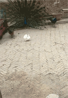 » 跟孔雀混久了,连鸽子都会开屏了 !