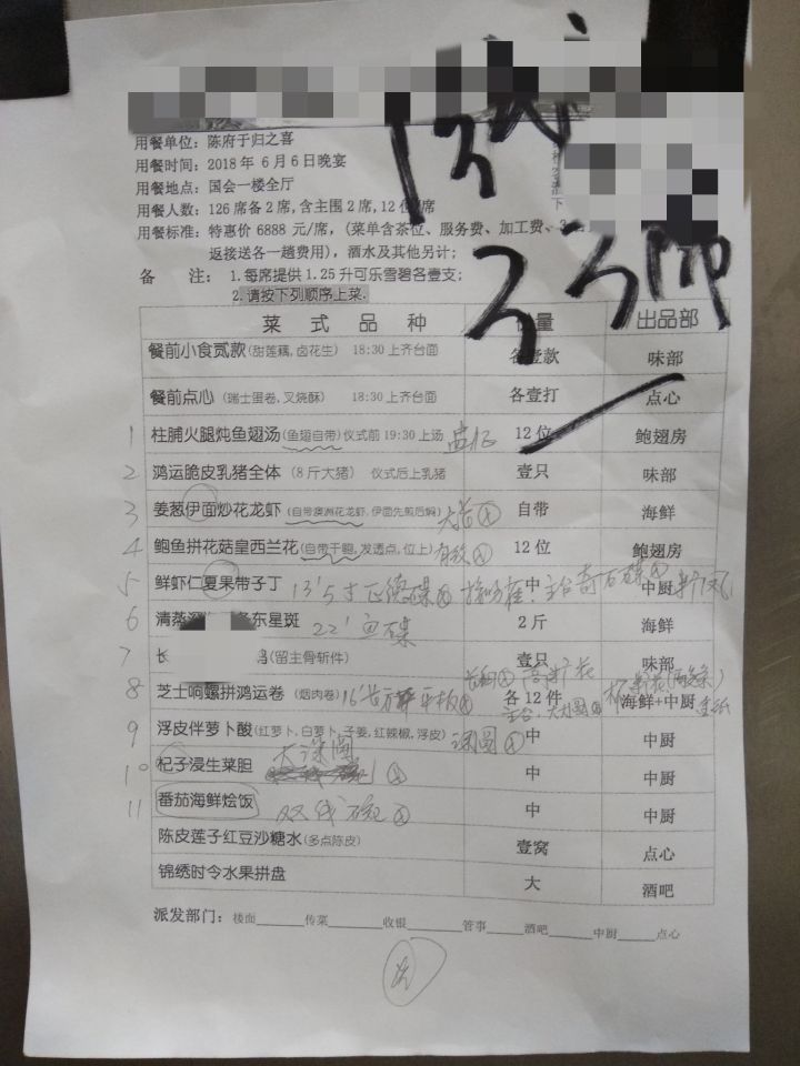 这三样食材是客人自备的,不包含在6888一桌的价格里面,个人估计光客人自备的这三样食材就二三十万了。
