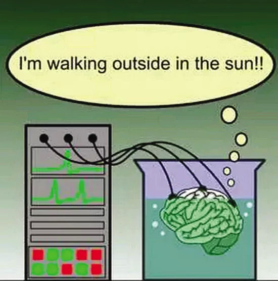而这些感觉只需要大脑就可以提供了,所以我们可能只是泡在缸中的大脑。