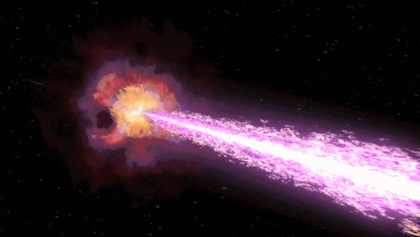 伽马射线暴大概是这个效果,曾在5亿年前左右袭击过地球,当时导致了大量的生命灭绝
