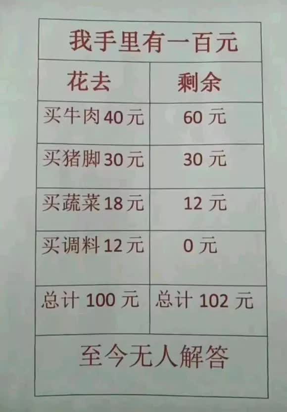楼主:这差的两块钱哪去了?看似很简单的算数题,我竟然一时想不出逻辑漏洞在哪里