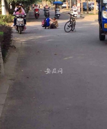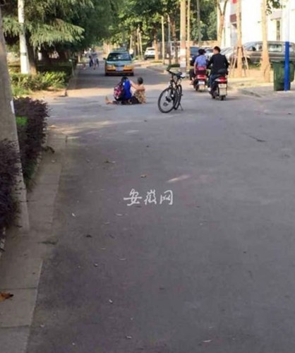 【女大学生称扶老太被讹 目击者首度公开现场照片】“女大学生称扶老太被讹”持续发酵,目击者已出面向淮南警方说明情况,通过微博首度向社会公开她所看到的一幕,并公布了现场照片。目击者明确说,小袁骑车从老太身边经过时,两者之间是有距离的,且不足以撞倒老人。