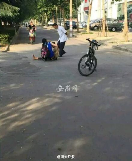 警方通报称,2015年9月8日17时许,淮南师范学院学生袁某在其辅导员陪同下,来到龙泉派出所求助:请求值班民警帮助调取监控,查看其当日上午7时40分许骑车经过中国一汽淮南服务站门口时,是否撞到了一位老太太桂某某。