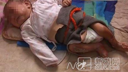 【女婴被用开水洗澡 父母均患精神病】8个月大的小春燕3个月前在河南老家全身烫伤,两条腿惨不忍睹。在浙江做环卫工的爷爷痛心地说,孩子父母是精神病,洗澡把孩子洗坏了。小春燕家里还有个精神有问题的奶奶。她2岁的哥哥从小是爷爷带大,否则后果可能也和小春燕一样。