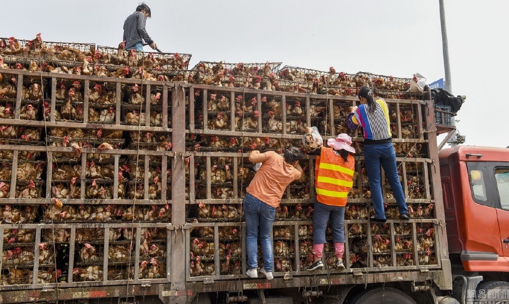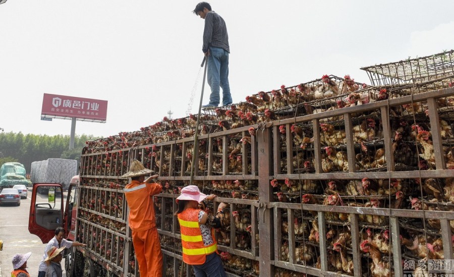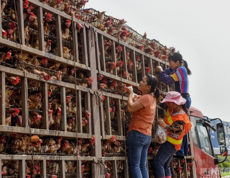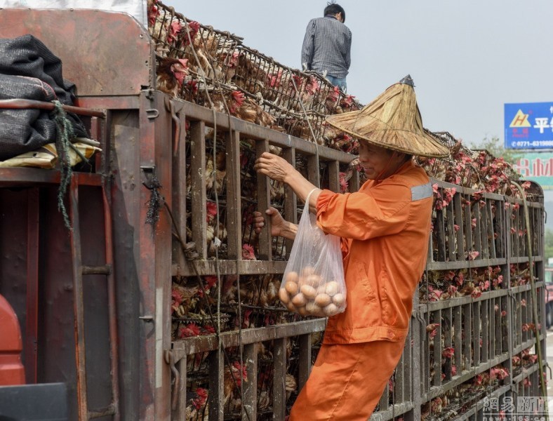 啊!这次很和谐!10月7日,在广西泉南高速路新兴服务区,一运输活鸡的车辆停靠服务区,货主忙着接水管给活鸡淋水降温。几位服务区的清洁工拿着塑料袋爬上车厢在活鸡们的脚下掏出一枚枚鸡蛋,不一会就掏出一袋鸡蛋。据了解,这些鸡蛋如果不掏出来,也会被鸡踩烂或啄烂,货主无暇,故对服务区清洁工行为视而不见。