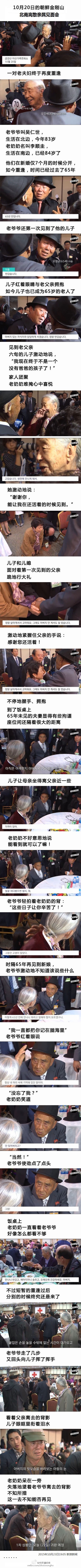 一对夫妻,丈夫是朝鲜人,妻子是韩国人。在他们新婚仅7个月的时候就被迫分开。相隔三八线,苦等65年终于再度相聚,儿子也已是六旬老者。
