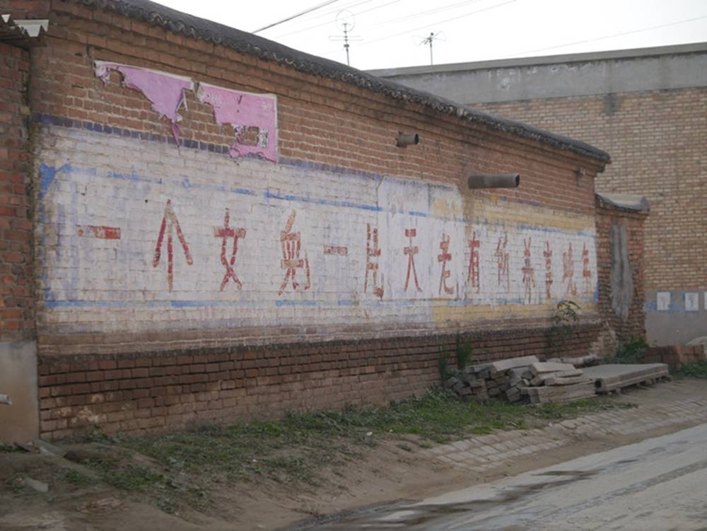 看到计生标语,已经褪色。