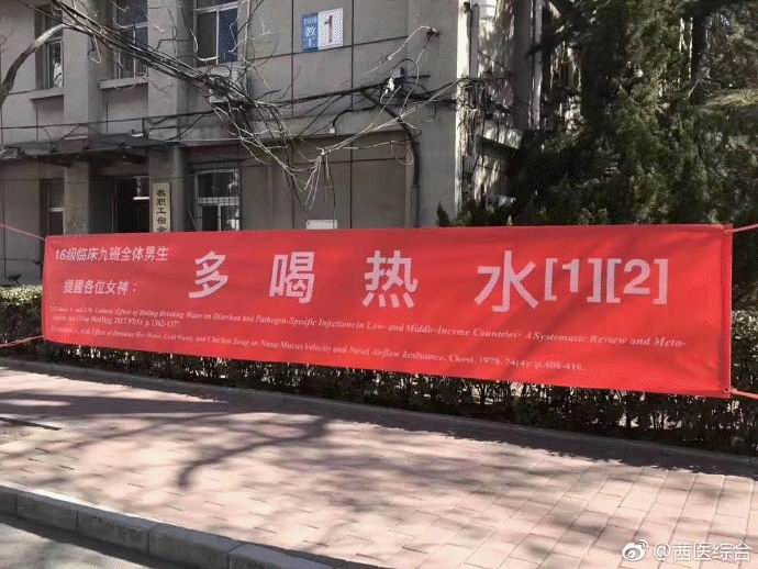 医学院的横幅就不一样了,是带有参考文献的!