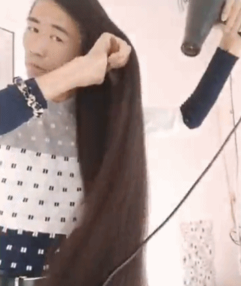 说,河南这哥们,蓄发5年,头发长度约1米4。他一直的愿望就是想挑战世界纪录,用直升机吊着头发带自己飞向高空。他说自己洗头要2小时,吹头要1小时,累是值得的,自己不理会别人怎么说,做好自己就行了。