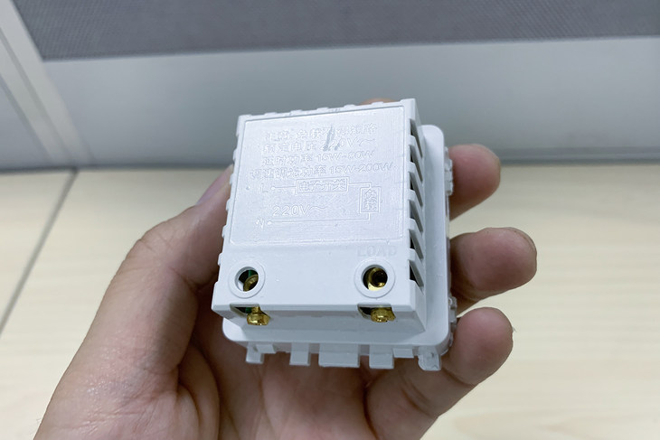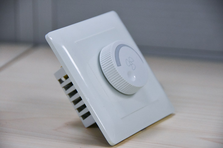 首先要买一个无级调速开关,小时候家里用的吊扇用的就是这种,通过旋钮来控制风量的大小,便宜的还不到十块钱,不过做工相对粗糙一些,不知道能不能经得住用。拿到手后把面板拆掉,需要用到的只是里面那部分。