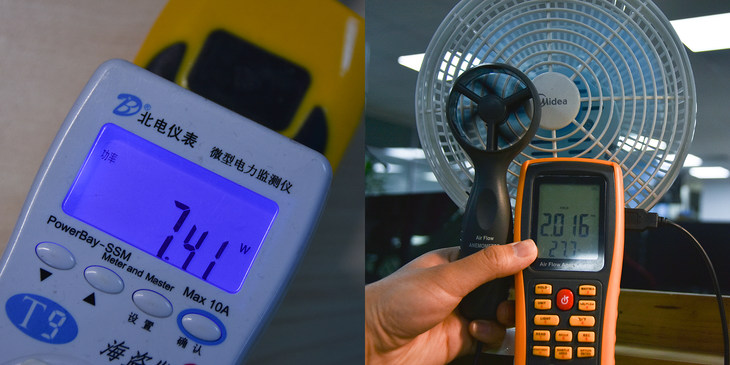 改造之后,通过旋转无级调速开关,可以让电风扇以明显低于1挡的风速运转,我现在常用的这个挡位功耗是7.4W,风速为2m/s,风量比原来的1挡明显小了很多,连续吹了一天也没有感觉不舒服,同时噪音也小了一些。