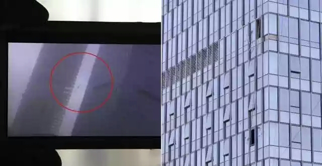 附近一个小区有人目睹这一过程,并用手机拍下了当时的惨景。“事情发生在下午5点20分左右,”目击者刘先生讲,当时他正在事发大楼北侧的一栋高层中,突然听到有人惨叫,等他从窗子看向外面时,发现在绿地中心A座的北侧外立面,大概有十几个人正在作业,天气突然变化起了大风,有两个人被大风吹起,因为有绳索的牵引,两人被吹至大楼东侧位置、距离大楼数十米的空中,然后在绳索的牵引下回落,直接撞向大楼东侧外立面。