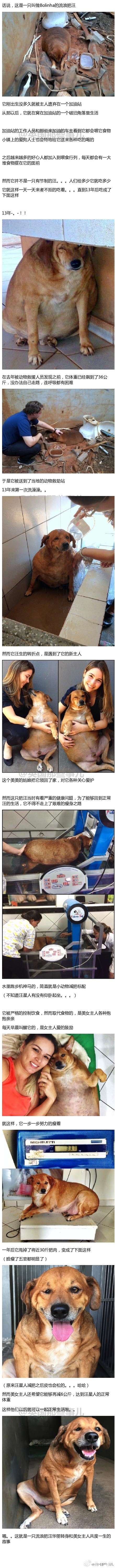 它是一只流浪狗,被人胡吃海塞的乱喂,居然给喂成了这么一个36公斤的大肥汪….. 然而最近它终于华丽地瘦身成功……. 跟美女主人共度一生去了……..