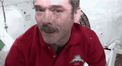 宇航员在太空中流出泪水,由于失重,泪水掉不下来,在脸上来回滚动。.gif