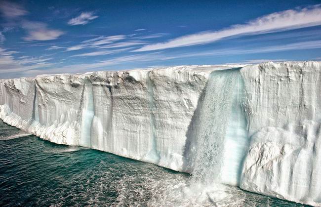 在北极和南极地区,冰层正在减少。挪威斯瓦尔巴群岛的东北地岛冰帽正在融化。