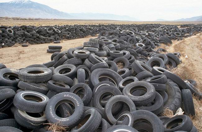 美国内华达州沙漠中堆积成山的废旧轮胎