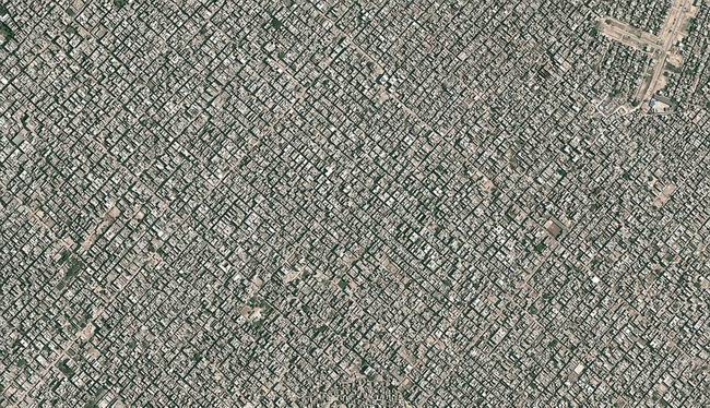 印度首都新德里航拍照,这里有2200万人口,每平方英里人口达3万人。