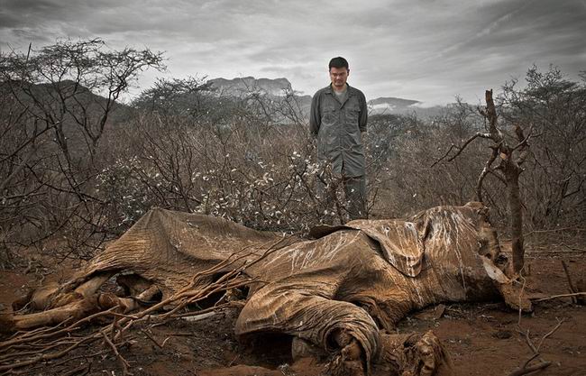 中国篮球明星姚明在肯尼亚北部与一头被偷猎的大象面对面近距离接触。