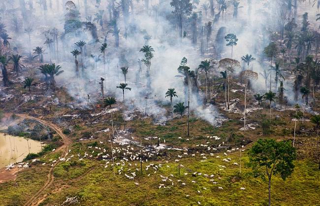 巴西亚马逊丛林被烧毁,以便放牧。