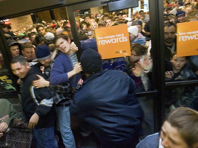 2007年11月24日星期五凌晨1点,美国爱达荷州博伊西市购物中心疯狂挤入大批消费者,等着抢购打折商品