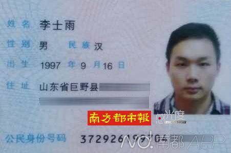 替考组织者给枪手准备的名为李士雨的“身份证”,照片就是替考者。