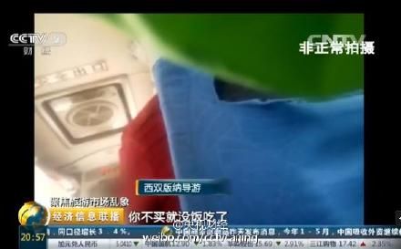 央视6月13日报道,【再次曝光!云南旅游乱象:不购物就没饭吃】记者和国家旅游局调查组一起,体验了西双版纳旅游团的行程。总共四天三晚,实际游玩的时间就是在三个景区,每个一个半小时左右。而大量时间就是从一个购物点,到另一个购物点。导游甚至放言:“你不买就没饭吃了。”购物出来以后,导游会根据小票一一登记。