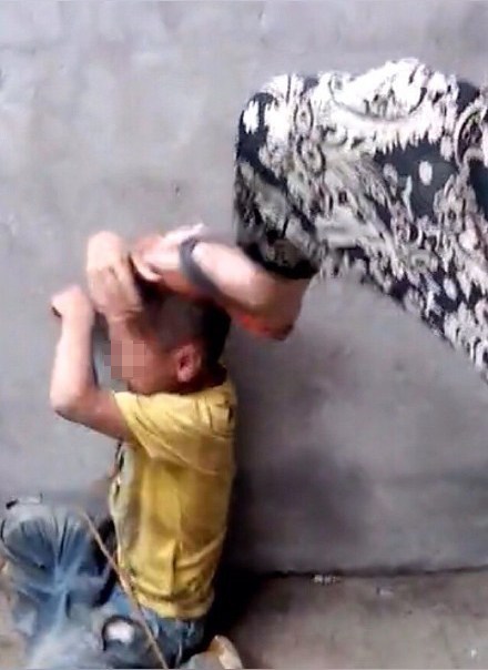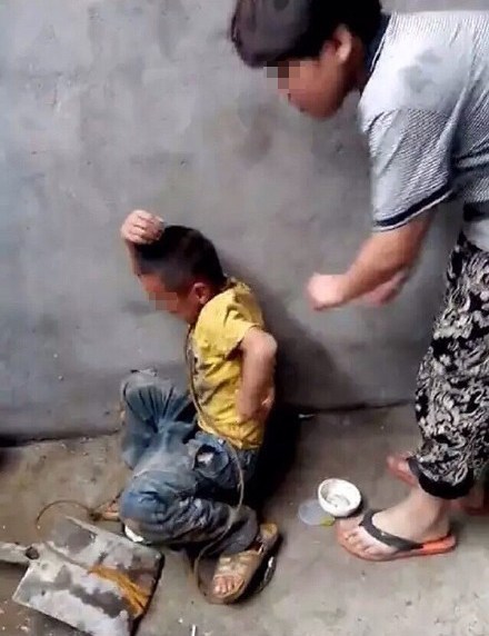 21日消息,网友发布一则视频,并爆料浙江省庆元初中一学生将一名小学一年级学生关在一间屋子里暴力殴打,用香烟烫。图为网友爆料的视频截图,视频显示一个小男生被几名年纪较大的男孩追打,一个男孩将脚踩在了小男生头上。