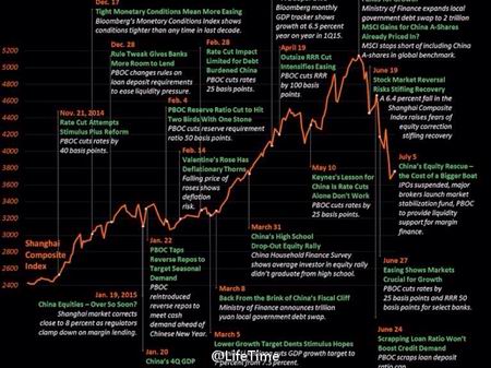 "但是股市很少会听命于政治人物。投资者不会按照命令投放资金,中国私人投资者也同样不会这么做。因此现在中国股市可能会经历类似上一次崩盘之后的景象。2007年中国股市在经历了类似的一轮高潮之后突然崩溃。之后经过7年才重新上行。7年没有彩虹的雨天,这对于北京的经济规划者们来说一定是非常悲惨的场景。"
