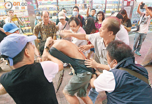 7月6日报道,香港近百名本土派成员在6月28日晚于旺角西洋菜南街,以反对“内地大妈”在旺角街头唱歌跳广场舞由闹事,“爱港行动”到场支持“大妈”。期间有市民、内地人与本土派人士多次对骂起哄,最后更爆发冲突,互相殴打,现场多人受伤流血。