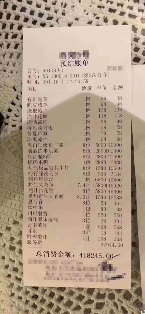 除了这顿不知道谁吃了的40万天价菜,另一顿实锤了的"争议饭局",则是发生在国内某证券公司的聚会上。