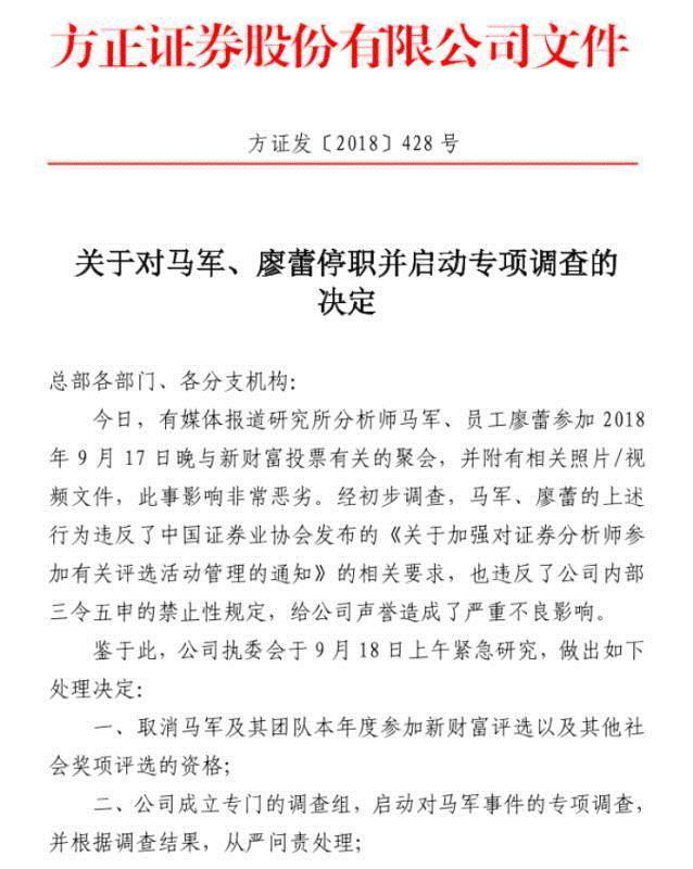 "证券圈饭局不雅视频"事件日前成了网络热点,主角为某证券分析师马某及其下属廖某等人。视频中,美女分析师廖某被指为马某拉票,与评委刘某某疑有不雅动作。视频曝光后,主角马某被取消参评新财富最佳分析师资格,而涉事证券公司也宣布对马某、廖某进行调查。