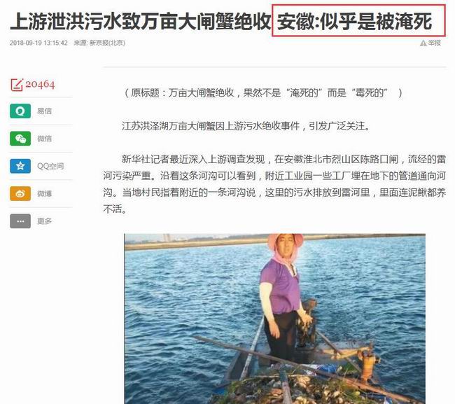 不过,听说最近江苏洪泽湖一带的大闸蟹不太好过?安徽方面的回应还说:你们的蟹,很可能是因为上游泄洪而被"淹死"的。