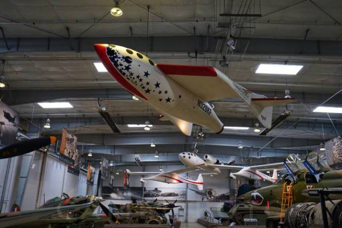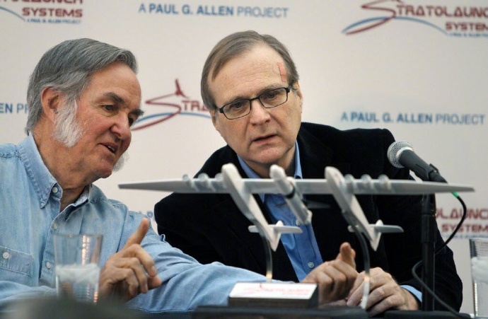 这些都是艾伦的私 藏,他从上世纪九十年代开始玩古董飞机。玩老飞机,是爱好,玩出大气层,是爱好加生意。飞行遗产博物馆里悬挂白骑士一号,就是他跟英国疯子、维珍的老板理 查布兰森以及我最爱的航空设计师伯特鲁坦一起搞出来的。白骑士一号和太空船一号的组合,第一次以民间公司之力把人送进了太空边缘。后来艾伦成立了同温层发 射系统公司,把鲁坦的玩法玩到了极致。他们造了世界上有史以来最大的飞机(以翼展算),这是一架双身怪兽,差不多相当于把两架波音747拼了起来。前不久 它刚完成滑跑测试,预计明年首飞。到时候,它的双身中间将会搭载一枚飞马座XL火箭,在万米高空进行航天发射任务。这样既可以拜托航天发射场建设选址的限 制,又让火箭避开了阻力最大的最初一万米。