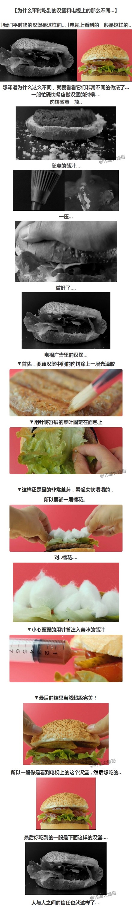 这就是为什么你平时吃的汉堡和电视上那么不同的原因.....