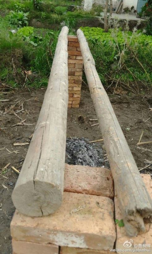 今天上午,我在自家菜地里搭建了木烤杆,找来了玉米干柴、红豆杉木屑,把火烧起来之后,我就躺在木烤杆上让火炭烤。我这种办法居然可以让42℃的高温持续半个多小时以上。烤一会就下来烧一会火,烤多几天我再去医院检查,看看癌细胞有没有被杀死。