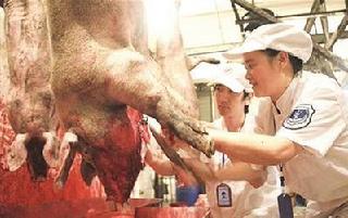 《规定》要求,今后各屠宰厂(场)在展开生猪屠宰生产过程中,生猪在送宰前通过屠宰通道时,应按顺序赶送,不得脚踢、棒打。另外,目前我省部分大型屠宰场在生猪在宰杀前,已经展开了麻电致昏处理,今后这一措施将逐步扩大,争取每一个有条件的实施点都实施。《规范》还对宰杀过程中放血时长、浸烫等步骤都做了详细规定。