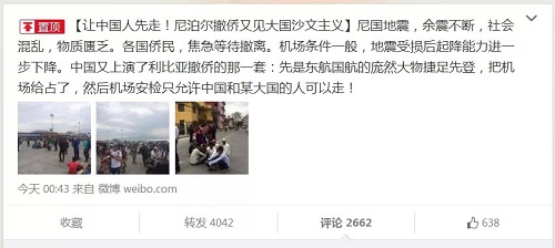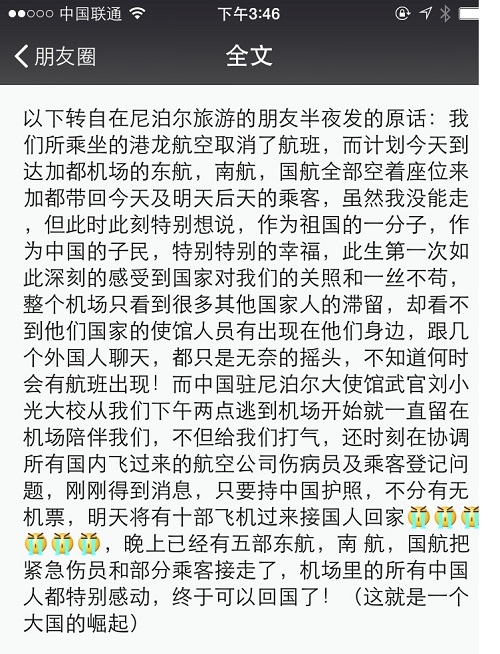 原帖由 Guest from 150.88.36.x 于 2015-4-28 11:38 发表 作为一个大国,国民为自己的国家作出自己的贡献,为国民负责,让国人感到温暖是应该要的