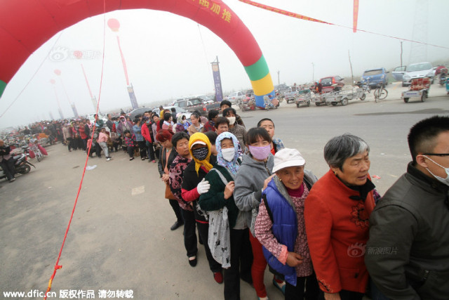 5月3日,山东滨州一商家“五一劳动节”搞慈善,免费向附近居民发放5000袋大米、5000桶油,引来万人通宵排队。据目击者说,从凌晨2:00开始,开着三轮、提着大小马扎前来排队的人群,就聚集在商家门前,黑压压的人群与车队足足排了2公里。