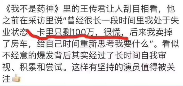 最近因为《我不是药神》上演技出色的火红的演员王传君接受采访时说的话,有人问我这句话啥意思,完全看不懂。。。想胖编来解读一下。。。