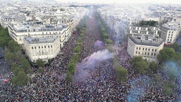 法国夺冠,久别20年的世界杯再次回家,整个香榭丽舍大街,瞬间成了一片狂欢的海洋。