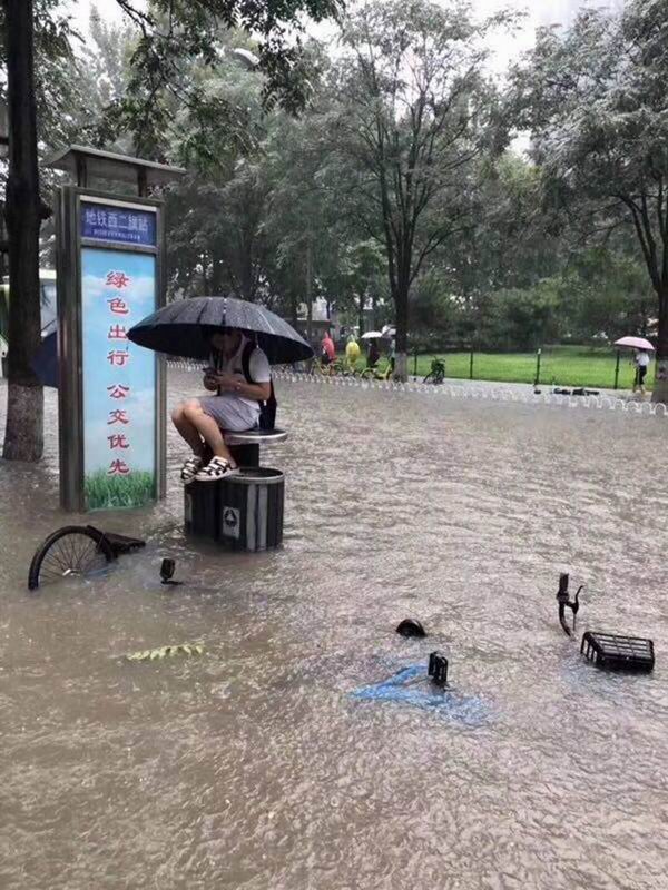 今晨,北京部分城区出现暴雨,部分路段积水严重,回龙观再现看海模式。