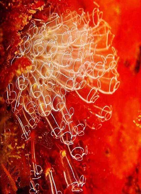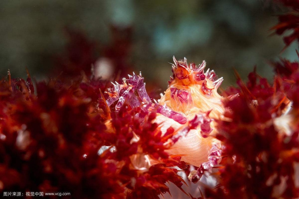 糖果蟹属于共生蟹,它的宿主是红色的软珊瑚,所以它的体色看上去和红珊瑚的颜色几乎是相匹配的。糖果蟹这样的形体特点,一方面方便它伪装起来躲避敌人的侵扰,另一方面还方便牠分享宿主的食物和海里的微生物。