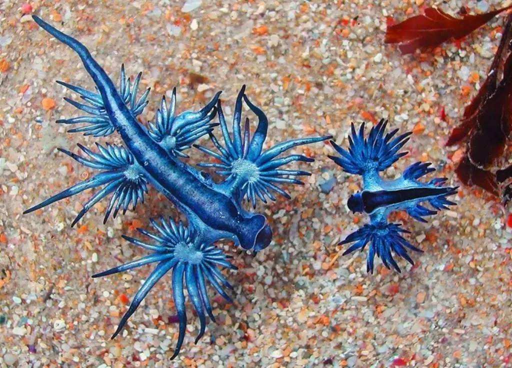 俗称蓝燕子或者蓝龙,是一种蓝色、小型的远洋翼蓑海牛腹足纲海神鳃科软体动物 。“大西洋海神”首次见于1777年欧洲学者发表的文章,之所以将这种海蛞蝓称做“海神”,是因为它的外型如同希腊神话中的海神格劳科斯(Glaucus)一般。希腊神话中,海神Glaucus因为吃了神奇的草而得到永生,但双手却长了鱼鳍、双腿成了尾巴。大西洋海神海蛞蝓分布相当广泛,主要生活在热带及泛热带远海海域。由于其随洋流及海风浮动,偶尔会被冲上海滩。