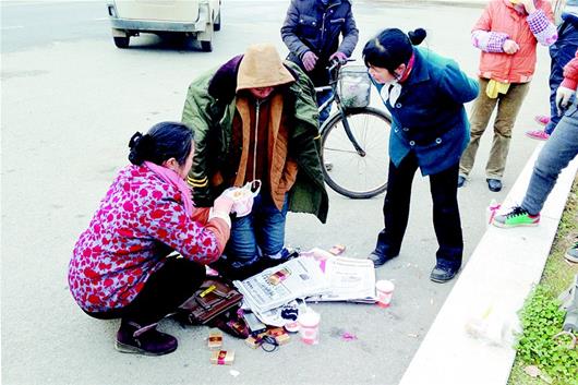 市民严先生称,前日下午他驱车路过武汉仪表电子学校门口时,看到一名男子跪在校门口,让他吃惊的是,昨日早上7时许,他再次路过此处时,看到该男子仍跪着。昨日上午9时许,记者赶到现场,该男子双膝跪地,身体不时发抖,地上散落着几包香烟、两瓶白酒、一部摔坏的手机,还有一些热饮和面食。他左手割伤,有鲜血流出。