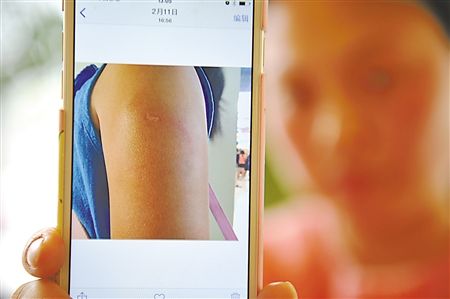 陈女士出示手机里孩子被咬伤的照片
