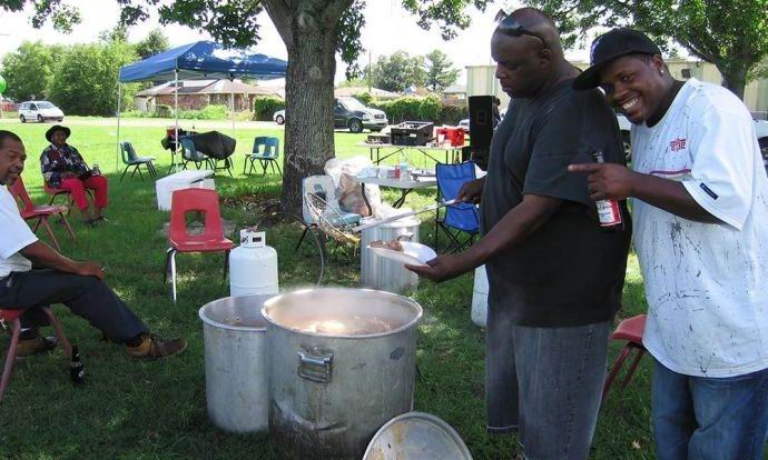 有一次很有趣的田野考察的经历,我开着车,见到当地一家老小在公园野餐,看到他们的的锅里好像煲了很多好吃的东西,大家围着一个大的桶在吃东西。