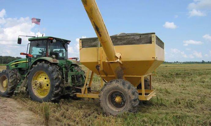 他们考虑了各方面的情况,就将稻米的田灌上水,放一些虾苗进去养虾,你能看到他们养虾的地方是一块田。用我们看到的这部大机器将稻割掉之后剩下来的根,再灌了水之后,就变成小龙虾的食物了。