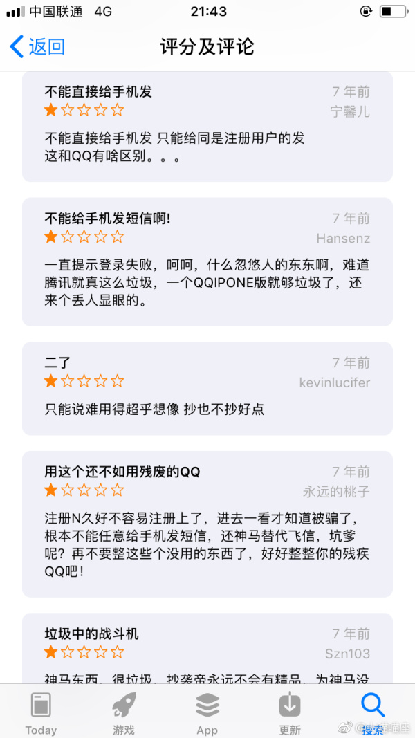 7年前苹果商店对微信的评价