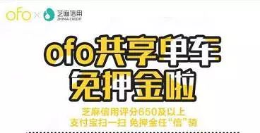 既然今天 ofo 可以根据你的芝麻信用给你免押金。